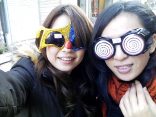 売り物のサングラスでおもしろいのみつけて記念撮影