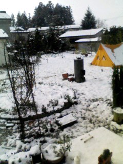 家の庭に積もった雪を記念に撮影(笑)